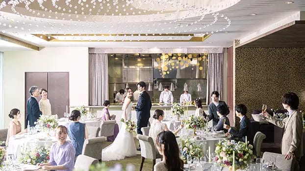 - 2.壮大なフルオープンキッチンから提供される料理。1組貸切“美食”ウェディング