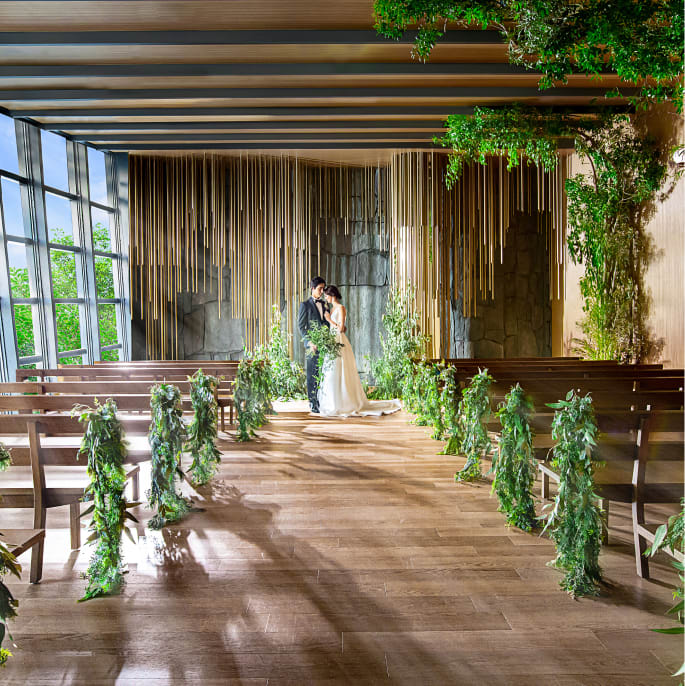 天然素材を使用した光・木・石が織りなす自然と調和したチャペルへリニューアル!名駅徒歩4分とアクセスも抜群。ゲストに喜ばれる1組貸切の寛ぎ空間×フルオーダーメイド料理で特別なおもてなしを。