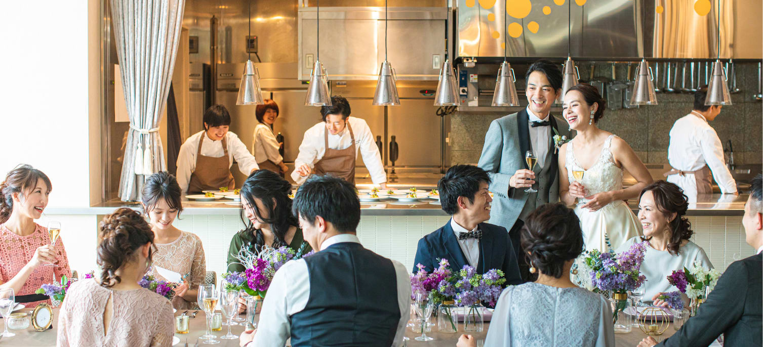 都会とは思えない緑の恵みと温かな自然光が包む洗練空間を有し「自分らしく、でもしっかりおもてなししたい」そんな要望が叶う《予約の取れないレストラン》で最上階ガーデンウェディング。