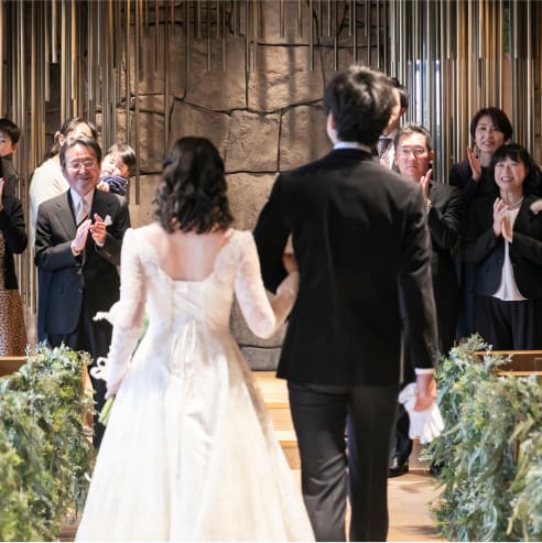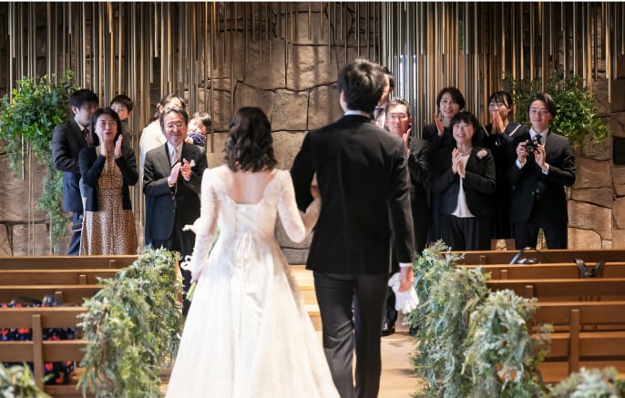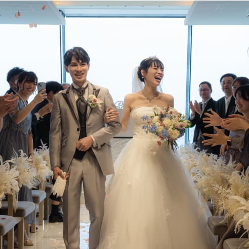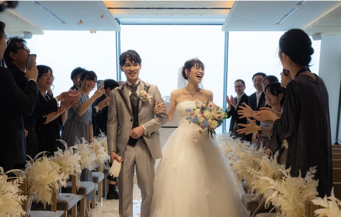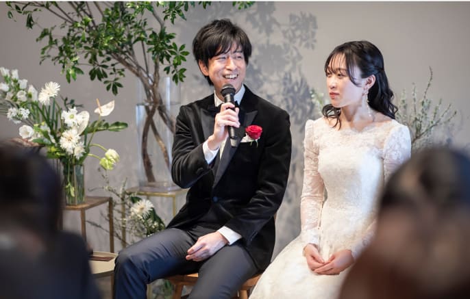 どこまでゲストを招待するか悩みましたが、お互いに気を遣わないように少人数ウェディングを選びました。家族・親族と本当に親しい友人のみを招待し、新郎側と新婦側の人数も合わせました。少人数専用会場の広さがちょうど良かったので、アットホームな結婚式になりました。