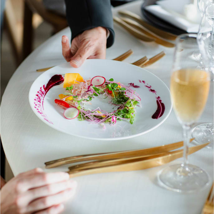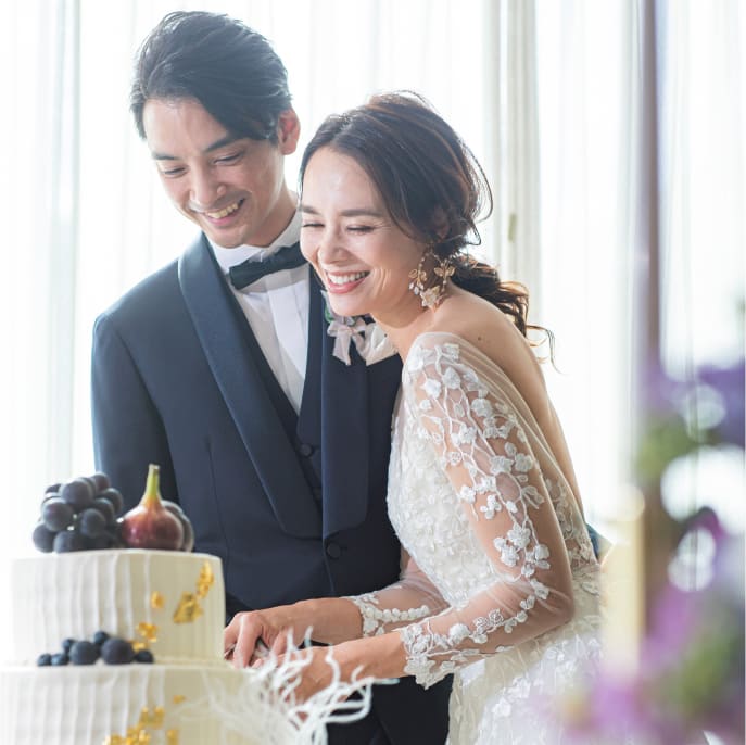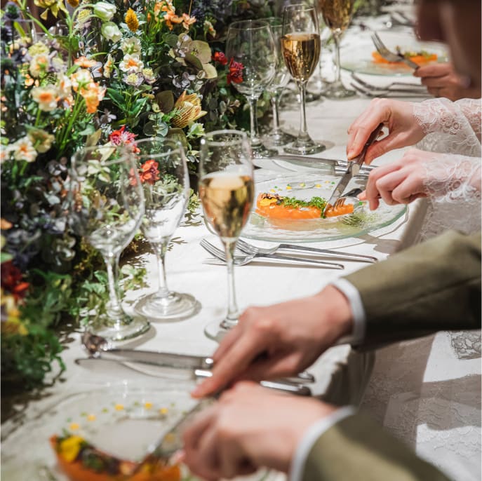 オー・ド・ヴィーなら、ガーデンから高層階までさまざまな会場をご用意しています。また、お食事するゲストのことを考えたオリジナルレシピも好評で、少人数ウェディングを挙げられた方から高い評価をいただいています。