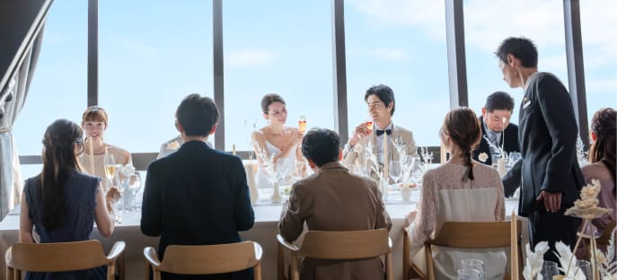 空・緑・眺望を独り占めできる圧倒的ロケーションが魅力のトレンド空間。遠方ゲストも安心の名駅直結・好アクセス。絶景の天空チャペルや緑豊かな邸宅などの洗練空間&口コミ好評の美食でゲストをもてなそう。