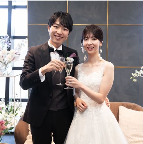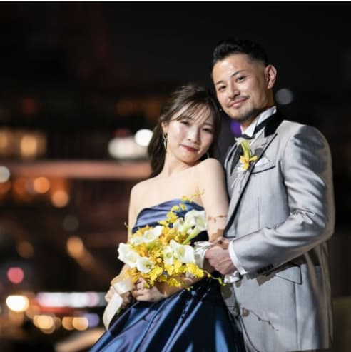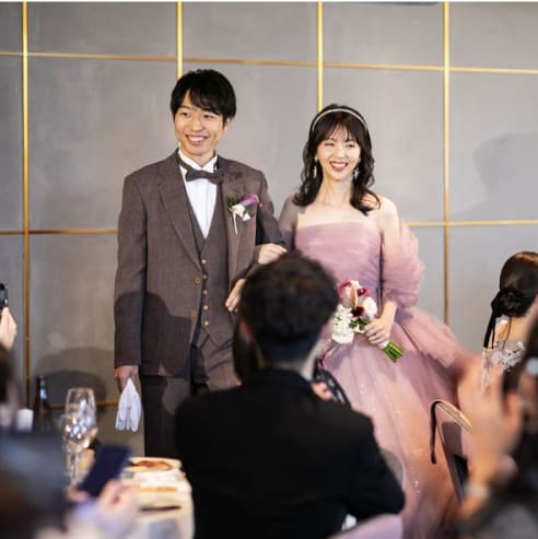 結婚式の前は緊張していましたが、挙式前の親との対面の時間をつくってもらい、少しリラックスできました。挙式の中では甥っ子、姪っ子によるリングキッズをお願いし、すごく思い出になりました。フラワーシャワーで退場するときにはゲストから「おめでとうー!」と大きな声で祝福を受け、「ありがとうー!」と言いながら笑顔で退場できました。披露宴会場のコーディネートはかわいいよりも大人っぽいシックな雰囲気にしました。パーティ後半の夜景が特に綺麗で、ゲストからも「夜の結婚式って良いね」と言われました。結婚式のあとに外でテレビ塔を背景に写真を撮りましたが、いま見ても迫力ある写真で嬉しいです。