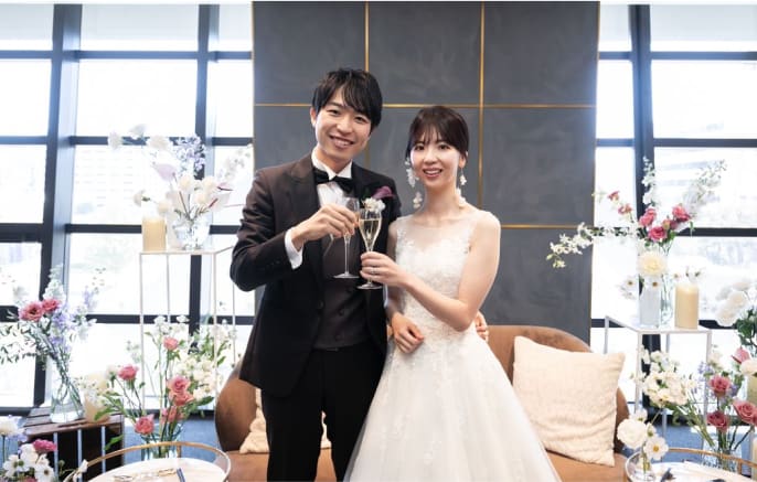 実際に会場を見学すると、オシャレな洗練された雰囲気で、良い意味でクラシック過ぎない部分をすごく気に入りました。またどのスタッフさんからも結婚式に対しての熱意を感じ、この人たちなら信頼できると任せることが出来ました。試食では見た目にも楽しい料理演出を実際に体験でき、当日の結婚式のイメージが出来ました。オープンしたばかりで周りに挙げた人がいないこともポイントです。親からも「昔から知っているテレビ塔がこんな風に生まれ変わって、子どもたちの結婚式の舞台になるなんてすごく嬉しい」と言ってもらえました。