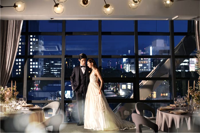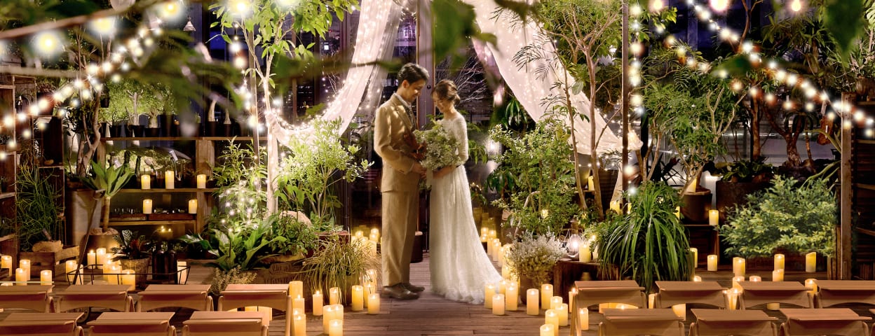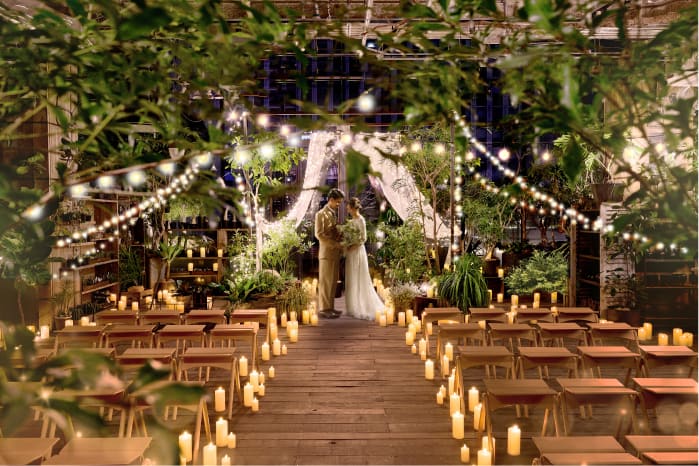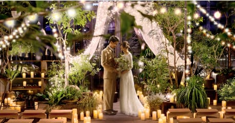 都会とは思えない緑の恵みと温かな自然光が包む洗練空間を有し「自分らしく、でもしっかりおもてなししたい」そんな要望が叶う《予約の取れないレストラン》で最上階ガーデンウェディング。