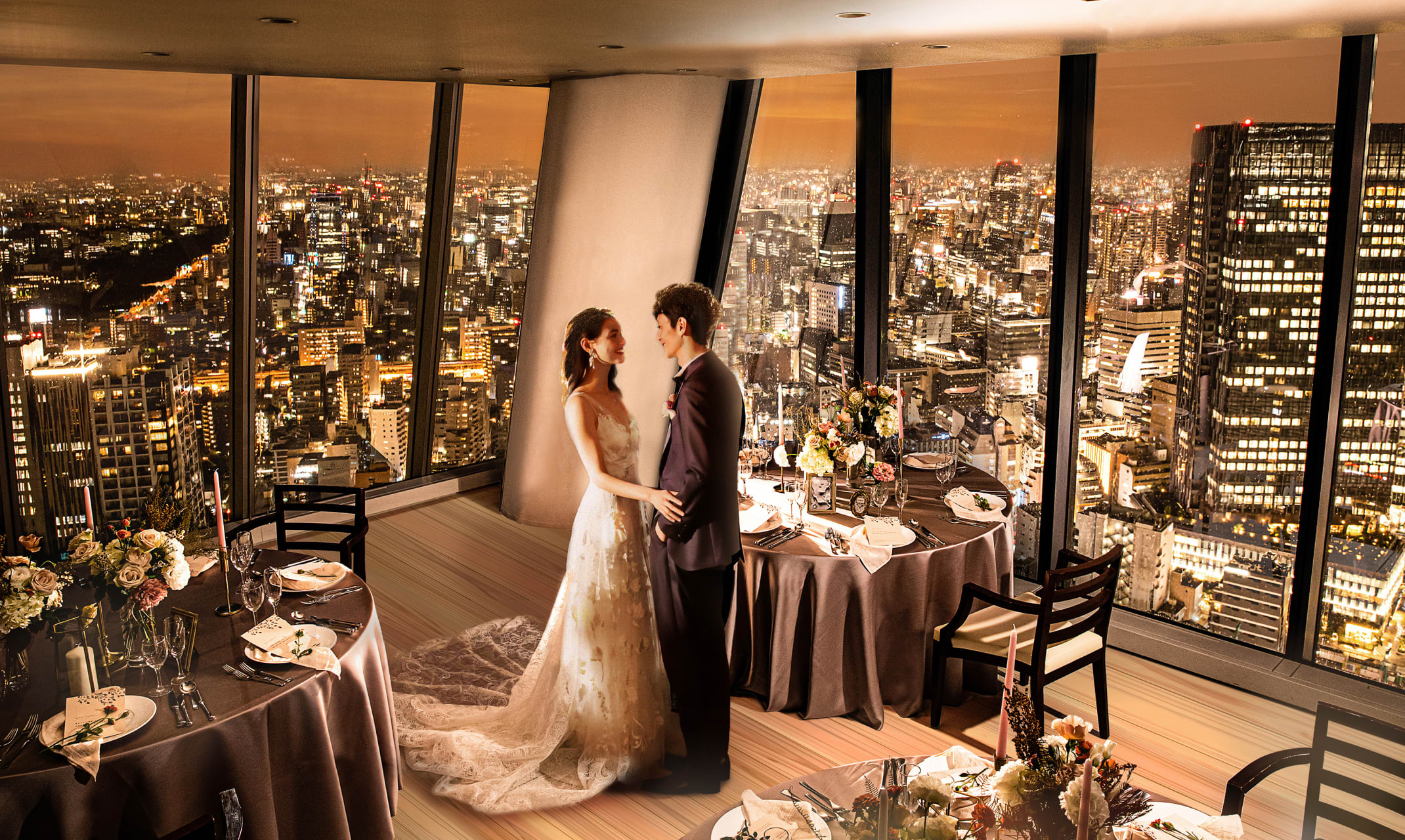 午後からの部で結婚式を挙げましたが、明るい時間・夕暮れ・夜の景色が一度に楽しめるのが最高でした!昼間は青空と名古屋の景色が見渡せて、夕方には夕焼けの綺麗なオレンジ、そして夜景では名古屋の街のライトアップがとても素敵な雰囲気でした。