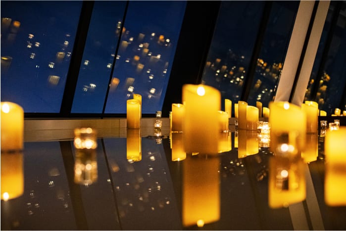 地上180m。名古屋の美しい夜景に囲まれた舞台は、圧倒的。