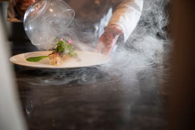 - 料理の味だけでなく、五感で楽しめる料理演出を多数用意(スモーク・サイフォン・ドライアイスなど)。