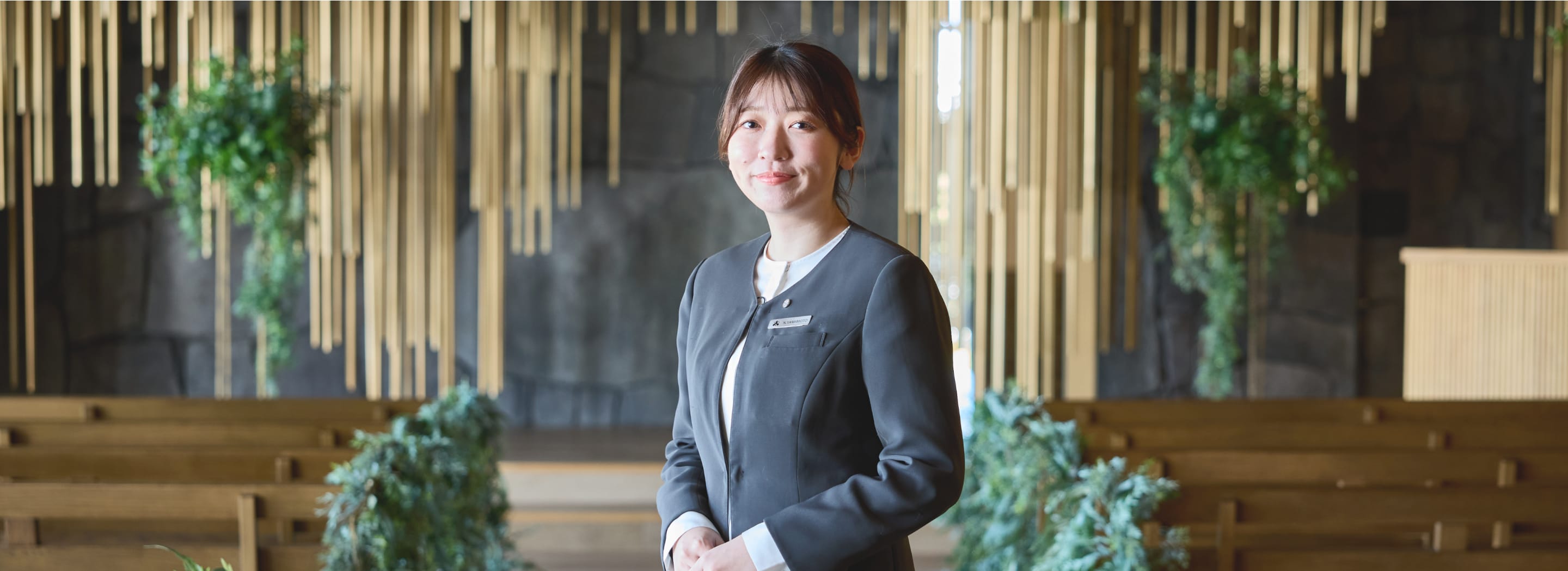愛知県豊川市出身。性格は穏やか。趣味は人に会うこと・人と話すこと。それと岩盤浴にハマっています。特技は相手の長所をすぐに見つけられること、学生時代にはフラワーコーディネートの勉強もしていたため、ラッピングも得意です。姉の結婚式でウェディング業界に興味を持ち、プランナーとして新郎新婦様をサポートして5年が経ちました。 『新郎新婦様が大事にしていることを一緒になって大事にできる』ことが強み。枠にはまらない提案力で、お二人のご希望とあれば「できない」を「できる」に変えるべく、日々考えをめぐらせています。